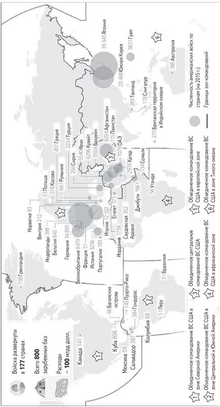 Расположение военных баз США. Available at: http://www.aif.ru/politics/opinion/pochemu_v_rossii_ne_lyubyat_ameriku Рисунок 4.1. Крупнейшие военные базы США в иностранных государствах Таким образом, не лично президент, будь то Трамп или Обама, определяет военную политику страны — они являются лишь проводником внешнеполитического курса Вашингтона, внося в него некоторые коррективы в период своего президентства в Белом доме.