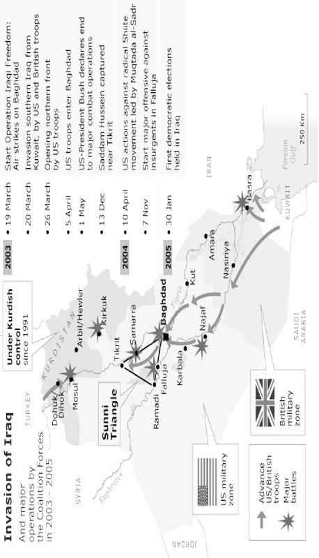 Summary of the Offensive Ground Campaign. Available at: http://nato.int/isaf/docu/epub/maps/graphics/afganistan_prt_rc.jpg. Рисунок 4.5. Многонациональные силы вторжения в Ирак и их операции в 2003–2005 гг.