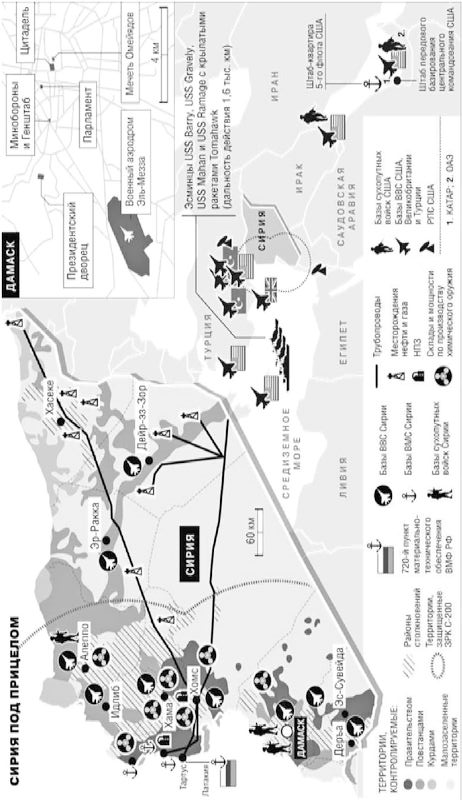 Следует отметить, что ближневосточная политика Соединенных Штатов после вторжения в Афганистан, Ирак и Ливию строилась на практически одержимом желании Вашингтона осуществить и «смену режима» в Сирии. Однако если в Афганистане и Ираке США могли рассчитывать на помощь обученной ими армии проамериканских правительств, то в Сирии наземная операция с участием ВС США пока невозможна из-за слабости отрядов оппозиции, таких как Сирийская свободная армия (ССА). Поэтому в Сирии в настоящее время действуют в основном американские ВВС, ВМС и подразделения специальных операций США, которые составляют основу коалиционной группировки войск, включающей как ВС западных стран и Турции, так и ВС государств Персидского залива. Финансируя с сентября 2014 г. подготовку подразделений ССА на территории Саудовской Аравии и Турции, Вашингтон израсходовал на эти цели около 500 млн долл. Однако многие из подготовленных таким образом сирийцев продали свое оружие террористам и сбежали из страны в Европу, спровоцировав там миграционный кризис. Поэтому в октябре 2015 г. Министерство обороны США приняло решение об отправке американских инструкторов непосредственно в лагеря сирийской оппозиции, чтобы укрепить их моральный дух и усилить их давление на позиции ИГИЛ. В результате их деятельности были сформированы «Демократические силы Сирии», объединившие сирийских и курдских союзников США в борьбе против легитимно избранного правительства[185] (см. рис. 4.7). С самого начала гражданской войны в Сирии ЦРУ также оказывало активную поддержку так называемой «умеренной оппозиции», в частности вооруженному формированию Свободная армия Сирии. Первоначально повстанцам предоставлялась нелетальная военная помощь, но позже она была дополнена финансированием и обучением повстанческих формирований[186]. В сентябре 2014 г. Палата представителей Конгресса США дала разрешение администрации Обамы на проведение обучения и поставки оружия повстанцам из «умеренной оппозиции» для борьбы с «Исламским государством». Одними из таких группировок, которые получают американскую помощь, являются «Армия моджахедов», а также «Движение Хаззм»[187].