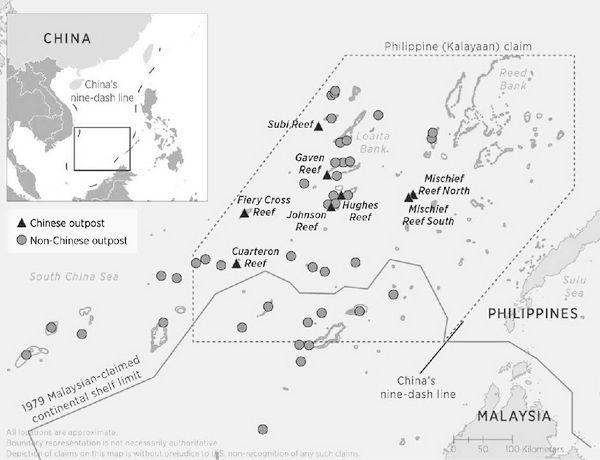 Источник: Annual Report to Congress. Military and Security Developments Involving the People’s Republic of China 2016. Office of the Secretary of Defense. Generated on 2016 April 26. — Р. 11. Рисунок 5.2. Территориальные споры в Южно-Китайском море