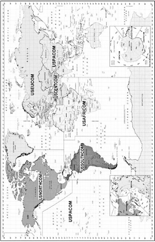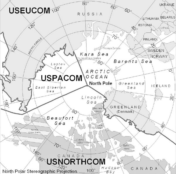 Важное значение для военной политики США в регионе приобрел и вопрос о том, какое из военных командований США должно нести ответственность за безопасность Арктики. Дело в том, что вся территория земного шара поделена на зоны ответственности между различными американскими военными командованиями (см. рис. 6.1)[290]