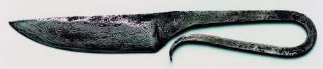 Под этим несложным термином скрывается такое количество «косяков», что иногда становится страшно даже Мастеру. Клинок после термообработки принято обтачивать при помощи различных абразивных кругов или лент, последовательно переходя от более крупного абразива к мелкому. Абразив меняют только после полного исчезновения следов от предыдущего, более крупного, камня. Вроде просто? Не тут-то было! Начнем с того, что в последнее время стало модным вообще не обрабатывать такие части клинка, как пята и голомень, оставляя нарочитые следы окалины и вмятины — признаки «ручной» ковки. Это придает клинку некий «первобытно-деревенский» стиль и значительно упрощает жизнь шлифовщику (фото 2). Но такой прием оправдан эстетически и идейно лишь при общей «первобытной» стилистике, ауры всего изделия, а не отдельно взятого клинка. Да и кто сейчас выковывает ножи полностью вручную? От пневматического молота таких следов не остается, там все гладко, уверяю вас… А на углеродистых клинках такие дизайнерские изыски — хорошая питательная среда для ржавчины, бактерий и неприятного запаха. По шлифовке и последующей полировке можно найти много неявных, редко замечаемых деталей, существенно влияющих на общую оценку качества представленного вашему взгляду ножа. Начнем с обуха… Часто ли вы видели тщательно отполированный обух? А часто ли качественно отполируют нижнюю часть пяты? По моим наблюдениям, не часто, а совсем даже редко. Ну, а аккуратно обработать вышеупомянутую дульку способен только откровенный «маньяк-полировщик». Теперь перейдем к самому, пожалуй, больному вопросу — рискам от наждака. При смене камня на более мелкий, следов от предыдущего абразива оставаться не должно! Но, вот тут-то и начинается самая откровенная халтура.… Где только они не «вылезают» эти риски, в любых местах! Хотя они и имеют характерные «излюбленные» зоны (фото 3). Самая частая — место перехода спусков клинка в пяту, так как подлезть туда сложно. Гораздо проще махнуть рукой, чем тратить драгоценное время на эту ненужную (по мнению многих) «красивость». Далее идут области сразу под ребром заточки и под обухом, затем область острия и область спуска вблизи РК. Но это только самые распространенные, ведь бывают и другие места дислокации такого брака — обух, пята, дулька… Все это еще терпимо на бегло отшлифованных «микроштрихом» ножах, там риски заметны только в косо падающих лучах света. Но при дальнейшей полировке ситуация ухудшается. Самый жуткий вид столь ненавистные мной риски придают клинкам узорчатым после травления. Это всевозможные дамаски и булаты, ведь на них узор составляет неотъемлемую часть клинка и главную составляющую его декоративности. И вот по этой красоте бракоделы и «бьют рисками». Кислота, используемая для проявления узора, травит риски в веселенький черный цвет, а с увеличением выдержки еще и углубляет их! При дальнейшей перешлифовке клинка от них очень трудно избавиться, посему проще их не замечать (не вам, конечно, — производителю). На режущие качества это не влияет, согласен… Однако представьте себе дорогую иномарку, на дорого и тщательно покрашенном кузове которой под слоем лака насыпана пыль, налипли соломинки, злят глаза царапины от гвоздей и пухлые воздушные пузыри… красиво? Так ведь на скорость это не влияет! В таком случае остается только
