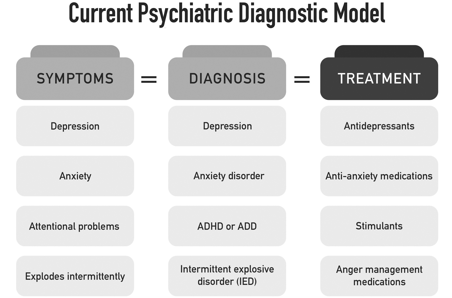 Нам стало предельно ясно, что, будучи психиатрами, мы имеем дело не с проблемами психического здоровья, а с проблемами здоровья мозга; и одна эта идея изменила все, что мы делаем, чтобы помочь нашим пациентам.
