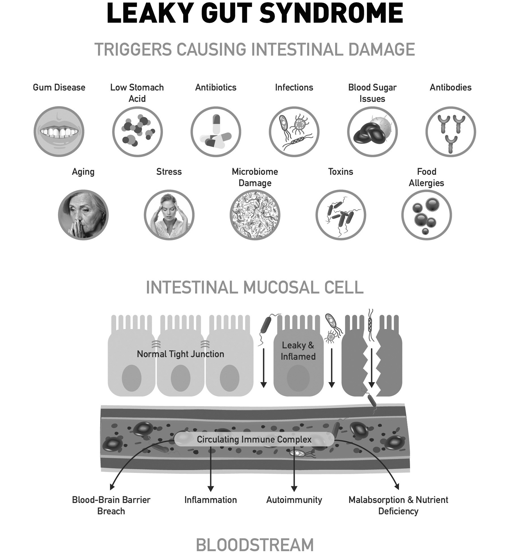 Варианты, связанные с чувствительностью к пище, негерметичностью кишечника, аллергическими реакциями, аутоиммунным риском, головными болями, раздражительностью, учащенным сердцебиением, зудом кожи и кровотечением из носа.