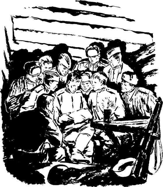 Я жил в землянке вместе с арттехником дивизиона Ваней Филипповым. Время от времени Ваня по ночам обходил огневые точки, измерял количество тормозной жидкости в противооткатных устройствах орудий, осматривал личное оружие, боеприпасы. Я часто сопровождал его в этих обходах. В то время офицерам еще не полагалось ординарцев, лишних людей не было. А был приказ: в одиночку по переднему краю не ходить. Филиппов тоже ходил со мной, когда два-три раза в неделю нужно было проверять боевую готовность расчетов или когда я дежурил на передовом НП, засекая пулеметные точки противника. Отправлялись мы вечером, дождавшись, когда придет из штаба полка письмоноша Томилин. Томилин — связист. По ночам он вместе с другими исправлял повреждения на линиях связи, а днем ходил в Автово за приказами и распоряжениями, а главное, за письмами. Воспитанник детского дома, он был одинок и сам писем не получал, но радовался, когда получали другие. Вручив треугольничек из клетчатой или полосатой ученической бумаги, он стоял рядом деликатно, никогда не пытался заглянуть в письмо. Только следил за выражением лица читающего и говорил уважительно: «Пишут… Эх, молодцы!» Или тихонько отступал в сторону: и это значило, что в письме было для солдата что-нибудь нерадостное. Приходил Томилин, мы брали у него письма для расчета, надевали белые маскхалаты, проверяли свои ППД: не загустела ли смазка, свободно ли ходит затвор — и вылезали на мороз. Снег скрипел под ногами. Сзади тревожно спал город, а впереди лежал привычно освещенный передний край. Немцы всю ночь пускали ракеты. Боялись темноты. От одного до другого орудия было метров шестьсот — восемьсот, но мы шли полчаса, час, а иногда еще дольше. Взлетает с шипеньем над головой ракета, и наши тени появляются на снегу… Немецкий снайпер заставляет нас ложиться. Пули со свистом сверлят снег именно там, где были наши тени. Ракета начинает падать и меркнуть. Мы вскакиваем и бежим вперед. Опять ракета… Ложись!.. Наконец впереди, над совсем незаметным снежным холмиком, вьется серый, видимый только вблизи дымок. Еще несколько шагов, прыжок через снежный бруствер — и мы на огневой позиции. Вот стоит выкрашенное в белую краску орудие в боевой готовности. Ствол его чуть выглядывает над бруствером. Открыты два ящика снарядов: в одном — бронебойные, в другом — осколочные с трубкой, установленной на картечь. Ровик и в снегу для боеприпасов, ровик и для укрытия людей, часовой, который давно нас видел и узнал и теперь только для порядка спрашивает условный пропуск. Три крутые ступеньки вниз, толкаем дверь и попадаем в тепло и копоть землянки. Все вместе это называется огневой точкой, а в землянке живет орудийный расчет. Шесть, пять, четыре или даже три человека, в зависимости от потерь и срока пополнения. Направо в самодельной пирамиде — винтовки, на полочке над ними — противотанковые гранаты. Налево — самодельная печка. Она топится — варят «супчик». При нашем появлении все встают, сгибаясь под низким потолком. Сержант докладывает. Ну какие тут формальности! Я поскорее командую «вольно» и раздаю письма, если они есть. И всегда мы с Ваней Филипповым чувствовали себя виноватыми перед теми солдатами, которые отходили в сторону, присаживаясь на корточки к печке. Писем им не было. Сержант показывает с огневой позиции, какие немецкие пулеметы или 