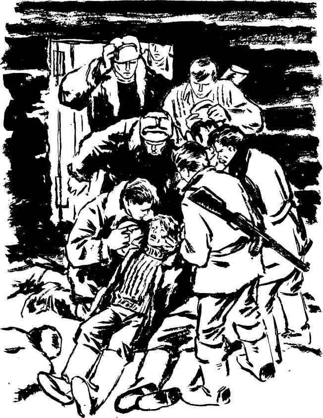 Город виднелся на высоком холме. Возвышенность эту глубоко разрезала речка. Я вышел к ней в стороне от моста. Лед уже был толстый, снег — по колено, он продолжал идти густо, крупными хлопьями. Тропинка бежала мимо большой, обшитой досками проруби. Там полоскали белье, оно снежно скрипело в руках хозяек. На высоком берегу ворчал гараж. Я шагал, по улицам, и снова что-то лихорадочное, нетерпеливое поднималось к сердцу. Здесь, в городе и области, жили десятки партизан Германа. Здесь были явки на Шулежной улице в доме № 12 и пароль: «Привет от Жени». Начал я с горкома и паспортного стола. Читал фамилии вслух: — Кляпин Аким Андреевич… — И вопросительно ждал. — Нет, не знаем. — Захарова Пелагея Васильевна? — Нет. — Глинский Владимир?.. Еремеев Иван?.. Кособрюхов… Павлов… — Нет… нет… нет… — сочувственно говорили товарищи. И на Шулежной, 12 тоже не было адресата явки — Охреповой Ольги. Я побывал в паспортном, в школе у следопытов, в избирательном участке. Паспортный стол располагал фамилиями тех, кто жил в самом городе. Грустно подтвердились сведения товарищей из горкома. Кто-то из старожилов стал припоминать фамилии по району. Мы звонили в совхозы, деревни. Оттуда отвечали: убит, уехал, не знаем. В паспортном подсказали насчет избирательных списков, там уж точно внесены все. Огромные фолианты списков я один читал бы неделю, но мне и здесь охотно помогали товарищи, стоило только узнать цель поисков. Листали, переспрашивали имена-отчества, сверяли с записной книжкой. Ни-ко-го! Ни единого человека! «Холм дотла был сожжен фашистами», — объяснили мне. Специальные команды поливали дома керосином и поджигали. О подобном варварстве я знал раньше, из литературы, но слушая очевидцев, как-то почувствовал, понял сердцем всю подлую мстительность оккупантов. Выгоняли стариков, женщин, детей на морозные улицы и поджигали дома и сараи. Горело все, что было заработано тяжким, долгим человеческим трудом: стены и крыши, столы и подушки, книги, стулья, игрушки… Красная вьюга искр носилась над городом. Люди толпились на улицах и плакали. Потом все ушли из сожженного города. После войны Холм отстроили заново. Много строят сейчас высоких, светлых домов, таких, как новая школа. Я познакомился с пионерами. Следопыты и здесь собирали историю края. Показывали с гордостью и ржавый маузер времен гражданской и оружие Отечественной, рассказывали о земляках-героях. Не было только фамилий, адресов, явок, которые я так искал. Я поделился с ребятами всем, что знал сам, и они загорелись большим весенним рейдом по партизанским тайникам-базам.„НЕТ ЛИ ЩЕЙ ГОРЯЧИХ?“