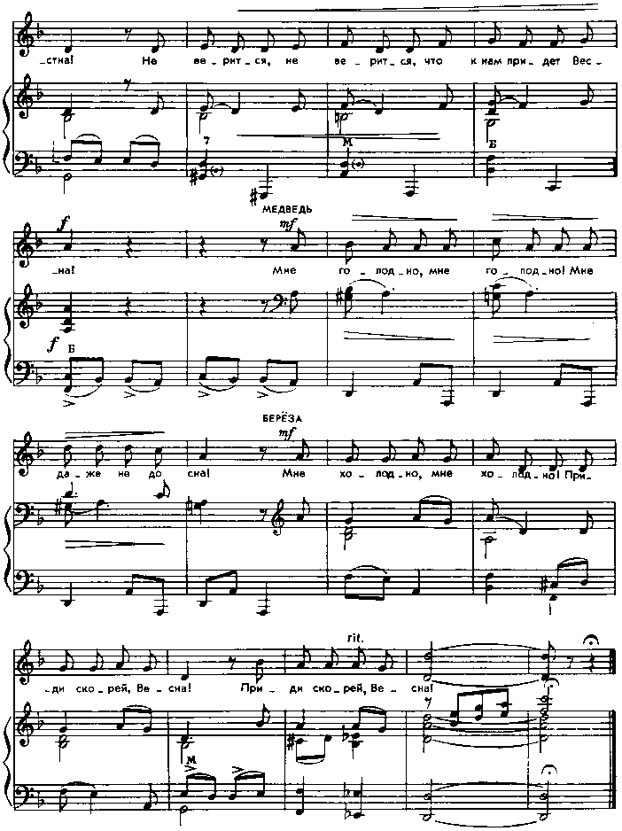 Хмурое утро в лесу. Еще темно и холодно. Березка зябко шумит ветвями. Из берлоги, зевая, вылезает медведь.