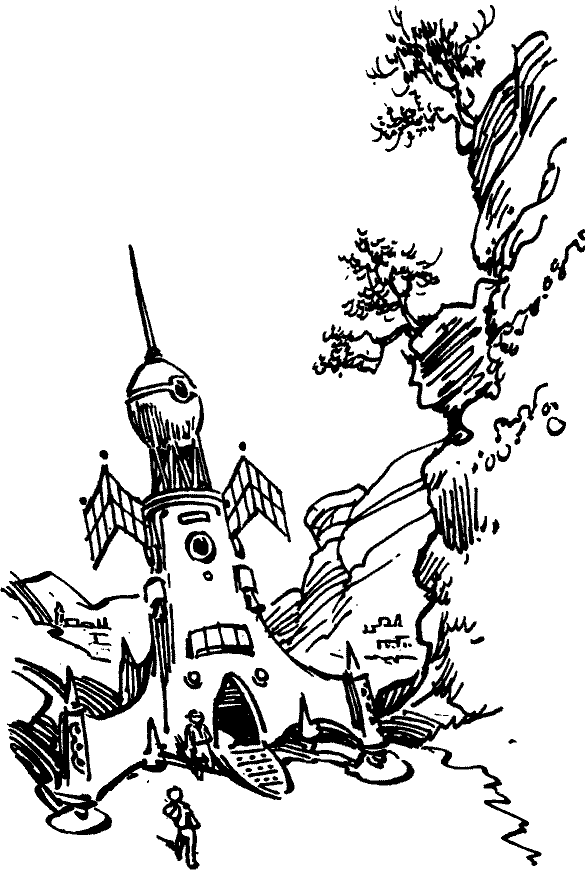 — Познакомься, — сказал папа Алеше. — Это Цицерон, наш старый добрый работяга. Вот этот автомобиль он может унести на руках. Поднимает до пяти тонн. — Алексей Александрович любовно похлопал робота по огромной руке-манипулятору, а Цицерон неожиданно сказал металлическим басом, от которого у Алеши защекотало в ушах: — Здорово, малыш! Клянусь своей электронной набивкой, мы с тобой обязательно подружимся. Ты любишь крутить гайки? — Не знаю, — удивленно ответил Алеша. — А я люблю, — сказал Цицерон. — Сядешь после работы на завалинке, возьмешь ключ девять на двенадцать и под коленкой гаечку раскрутишь-закрутишь, раскрутишь-закрутишь. Прия-атно! Алексей Александрович закрыл гараж и сел за руль, а Цицерон поднял Алешу и аккуратно посадил его на переднее сиденье рядом с папой. После этого он залез в машину, отчего легкий автомобиль сильно заскрипел и осел сантиметров на десять. И только Алеша заметил, как одна из сумок испуганно отползла в сторону, подальше от огромных ног робота-гиганта. — Да, Цицерон поговорить любит, — сказал Алексей Александрович. — За это и Цицероном прозвали. Иногда, правда, привирает безбожно. — Кто без греха, пусть бросит в меня камень, — философски заметил Цицерон. До космодрома ехали каких-нибудь полчаса. Корабль уже был готов к отлету. От работающего двигателя мощный корпус корабля слегка подрагивал, а дюзы были окутаны густым синеватым дымком. Ждали только представителей экспедиции с Земли. Алеша с папой, как только вышли из машины, направились к кораблю, а Цицерон легко сгреб в охапку сумки и чемоданы и последовал за ними.
