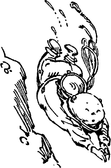 Быстрое течение подземной реки уносило Алексея Александровича все дальше и дальше. Упав в воду, он утопил защитный шлем и фонарь, поэтому плыть ему приходилось в кромешной темноте. Алексею Александровичу постоянно чудились самые страшные и кровожадные существа, какие только может создать воображение, но он старался не впадать в панику, отгонял опасные мысли и тихонько про себя твердил: «Ерунда, и не такое бывало». Эта простенькая фраза помогала ему сохранять душевное равновесие и силы. Пуленепробиваемый костюм был совсем легким и не промокал. Правда, Алексею Александровичу пришлось пожертвовать сумкой с продуктами и даже ботинками на толстой подошве, иначе они утянули бы его на дно. Всматриваясь в непроглядную тьму, Алешин папа старался держаться ближе к берегу тимиукского Стикса[1]. Он все время ощупывал камни, но зацепиться не представлялось никакой возможности — стены подземного русла были гладкими и скользкими, словно их хорошенько смазали жиром. Алексей Александрович знал, что друзья не бросят его в беде. Он несколько раз кричал, звал на помощь и вскоре услышал в ответ голос Тулеса, а затем увидел за поворотом свет фонаря. Тулес плыл быстрее, потому что держался середины реки, где течение было просто бешеным. Спасатели расстались всего несколько минут назад, но встреча была такой радостной, словно они не виделись лет двадцать. Тулес подплыл к Алексею Александровичу, выпустил изо рта струйку воды и радостно воскликнул: — Черт возьми, как приятно встретить под землей друга и коллегу. Не вздумайте больше убегать от нас. — Не буду, — пообещал Алешин папа. — А где наш уважаемый Туу-Пань? — Где-то позади. Боюсь, как бы он по рассеянности не поплыл в обратную сторону, — пошутил Тулес. — Однако какой хитрый нам попался тимиук. Как ловко он обдурил трех ученых. — Вот именно, ученых, — отозвался Тулес. — Пока мы с вами изучали биологию, он постигал не менее сложную науку — выживания. Здесь он нам даст сто очков вперед. Неожиданно за поворотом сплошная каменная стена оборвалась, и дальше пошел низкий берег, выступающий из воды всего на несколько сантиметров. Алексей Александрович тут же уцепился за выступ и, подтянувшись на руках, выкатился на ровную каменистую площадку. Затем помог неуклюжему Тулесу вылезти из воды. — Теперь главное — не прозевать Туу-Паня, — тяжело дыша, сказал Тулес. — Ловите его, Алексей Александрович, а то унесет нашего гуманиста в какое-нибудь подземное море и слопают его там слепые подземные акулы. Туу-Паня они услышали задолго до его появления. Чтобы не так страшно было плыть одному, биолог каждые пять минут принимался кричать: — Уважаемый Алексей Александрович! Уважаемый Тулес! Я здесь! Я плыву за вами! Туу-Паня поймали за руки, с трудом выволокли на берег, и он тут же бросился обнимать друзей. — Я думал, что больше никогда вас не увижу, уважаемые коллеги. Я уже и с жизнью попрощался. Боже мой, как это прекрасно, что мы снова вместе! Берег оказался узкой полосой, метров трех в ширину, идущей вдоль реки. Двигаться здесь можно было только в одну сторону, и спасатели тронулись в путь в надежде найти другой выход на поверхность земли. Посоветовавшись, они решили добраться до пещер с зарешеченными входами и с помощью своих острых ножей попытаться проделать небольшой лаз в решетке, но тут выяснилось, что все трое утопили