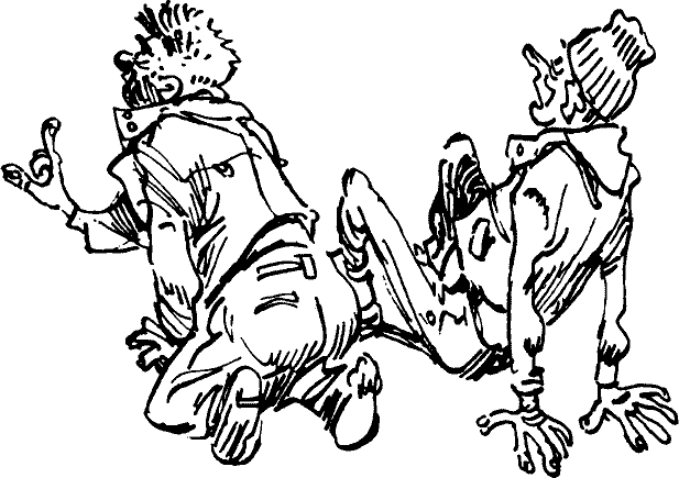 Из дома злоумышленников Фуго с Дариндой отправились в Тучковское отделение милиции. Их попросили приехать, чтобы составить протокол на Косого и Горбатого. Обстоятельства дела показались оперативникам весьма странными, и уже в машине усатый следователь начал задавать мимикрам каверзные вопросы. — Интересно, — задумчиво проговорил усатый, — как это вам, пожилым людям такого маленького роста, удалось задержать двух матерых преступников? — Да так, — скромно ответил Фуго. — Преступники, они же как дети. Рявкнешь на них погромче, они и раскисают. А вообще вы не смотрите, что я такой мелкий. Рука у меня ох какая тяжелая. — Простите, а чем же вы их так напугали?— не отставал следователь. Он повернулся назад и посмотрел на похитителей, которые сидели за металлической сеткой. Оба злодея были бледные, бормотали о какой-то пантере и оборотнях. У одного в шевелюре даже появилась седая прядь, а у второго тряслась нижняя губа и не переставая текли слезы. — Понимаете, — соображая на ходу, начал Фуго. — Вообще-то я гипнотизер. Ну и внушил им какой-то пустяк. — Ничего себя пустяк, — усмехнулся усатый следователь. — Преступники от страха «мама» не могут выговорить. В отделении милиции Фуго повторил дежурному свой бессвязный рассказ о том, как их украли, тот аккуратно внес это в протокол, а потом перечитал и почесал затылок. — И все-таки мне не совсем ясно, — сказал он. — Что они украли, вас или телевизоры? — Нас, — твердо ответил Фуго. — А где тогда телевизоры? — спросил дежурный. — Вообще-то вначале воры украли телевизоры. Но затем вернулись, поставили их на место и забрали нас, — ответил Фуго. — Зачем? — не понял дежурный.
