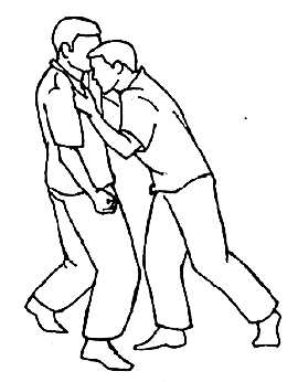 Первый этап освоения техник задиры — наработка так называемых поплечин и толканий в грудь. Если у вас нет напарника, то можете выполнять сильные и неожиданные толчки своими ладонями по бетонной стене, как бы пробивая ее. Так же можете работать и со стволом дерева. Делайте это из позиции опущенных вниз рук, резко и неожиданно, вкладывая в каждый толчок силу всего тела. Обратите внимание на использование опоры под ногами. Энергия атаки как бы «струится» из ваших стоп, словно вырываясь из земли. Именно эти ощущения породили древний мыслеобраз «использования энергии Земли». Ладони после ударов массируйте, чтобы снять болевые ощущения. Другим хорошим подготовительным и укрепляющим упражнением является свободное падение на выпрямленные руки (ладонями вниз). Старайтесь смягчить удар о пол сгибанием в локтевых суставах. Учитесь падать в любую сторону, разворачиваясь вокруг своей оси. Если ваши руки недостаточно подготовлены, то падения на руки выполняйте сначала с колен и затем постепенно увеличивайте высоту падения, привыкая к чувству страха. Подобные упражнения готовят ваши руки, в том числе к тому, чтобы остановить надвигающегося противника. Работая с напарником, учитесь резко и неожиданно толкать друг друга в грудь. Не забывайте о некоторых мерах предосторожности, связанных с опасностью выполнения толчков в область сердца, поэтому атакуйте друг друга ладонями ближе к зонам ключиц или в плечи. Растирайте ладонями атакуемые зоны после завершения атаки. Сначала не защищайтесь от толканий напарника и запоминайте свои ощущения. Учитесь сохранять самообладание даже при неожиданных и болезненных толчках. Меняйтесь ролями после десятка толкающих воздействий. В качестве эффективной техники атаки можно использовать следующее: после резкого толчка ладонями вы крепко захватываете одежду на груди противника, причем даже вместе с кожей и мышцами. Далее резко натягиваете на себя, одновременно нанося удар головой в его лицо, вслед за этим проводится удар коленом в пах, и… противника можно оставить падающим на землю, уже неспособным к сопротивлению. Такие действия специально нарабатываются для подавления противника и устрашения его сообщников. При наработке выполняйте толкания поочередно, с нарастанием злости и раздражения. Пробуйте устоять на ногах при таких воздействиях. Помните, что неожиданный толчок может отбросить вас назад, вы можете далее упасть на землю, потеряв равновесие. Интересной формой атакующего воздействия является «небесное» толкание. Оно выполняется таким образом, чтобы напарник увидел быстрое движение ваших ладоней к себе, но в последний момент, когда он рефлекторно подаст свое тело навстречу, вы останавливаете свое движение, вызывая падение напарника вперед. Он как бы проваливается в пустоту, а вы, захватив его за голову или за плечи руками, можете резко потянуть на себя, одновременно выполняя удар коленом. Другой формой наработки техник задиры являются поплечины. Они выполняются как сильные удары-шлепки основанием ладони в плечо напарника. Траектория атаки проходит по дуге снизу вверх и внутрь. Конечной целью является плечо. Удар по плечу выполняется со всего маху, резко и неожиданно, вызывая обжигающую боль. Бейте справа и слева. Обменивайтесь ударами. Заметьте, как укрепляются атакуемые зоны. Одним из 