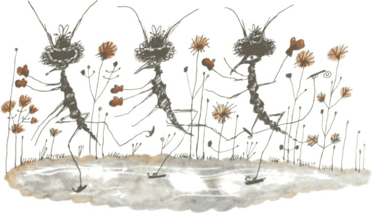 Мартышка. Ой, не могу усидеть! (Пускается в пляс.) Сова. Гляньте-кась, Рак-то — и про обиду забыл, на самых кончиках усов отплясывает! (Поднимает крылья и начинает выделывать ногами немыслимые па.) Стрекоза. И Кашалот танцует!