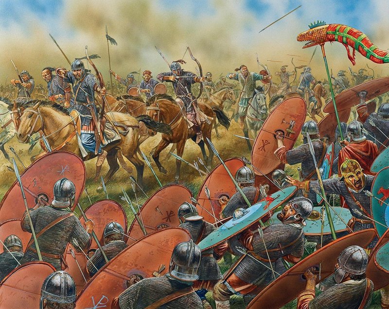 Со времен победы над аланами прошло восемьдесят лет, за это время несколько поколений гуннов, составлявших элитную, но малочисленную прослойку войска Аттилы, мало того, что активно ассимилировались, но еще и благодаря огромной добыче переходили в другой род войска — тяжелую кавалерию. Её атрибутами были дорогие доспехи и оружие, но при этом неизбежно менялся стиль боя конных лучников, неизменно приносивший им победу, особенно на просторах южнорусских степей. (После триумфа при Каррах парфянская конница также терпела поражение от римлян на другой, не равнинной местности). За это время в многоплеменной армии Аттилы активно происходил обмен опытом, в том числе и в использовании аркана и гуннского лука, напомню, что Аэций принял его на вооружение римской армии. Поэтому, когда после смерти харизматичного лидера, авторитет которого был непререкаем, между разнородными племенами, составлявшими орду, началась гражданская война, в ней закономерно победили более многочисленные германцы.