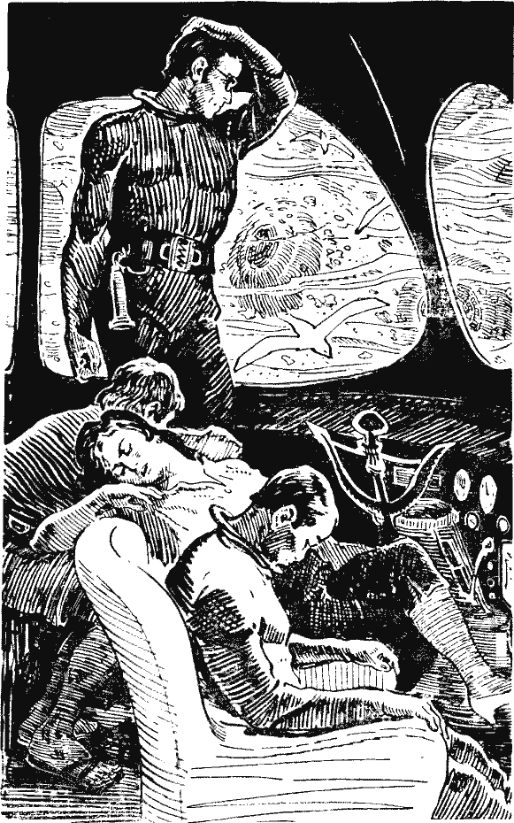 Атилла, пятилетний синий кит, бежал сразу после восхода солнца; за ним в брешь, образовавшуюся в силовом поле во время шторма, устремилось еще десятка полтора тоже преимущественно молодых китов. Все они были задержаны соединенными силами патрулей из приматов моря в двадцати милях от острова и к рассвету возвращены на пастбища. Одному Атилле удалось вырваться далеко вперед, он не обращал внимания на дельфинов, которые мастерски имитировали сигналы китов на высоких частотах. Смысл сигналов был таков: остановись, возвращайся назад, впереди опасность. Атилла почему-то игнорировал предупреждение. Он или уловил фальшь, или зов, приказывавший ему плыть к югу, был неодолим. Всю операцию по возвращению основной массы беглецов провели дельфины без нашего участия. И сейчас десять из них сопровождали Атиллу. Кит шел со скоростью двадцати миль в час. Самописец на центральном посту чертил на карте ровную линию, она начиналась от острова и двигалась в направлении Южного магнитного полюса. Костя сказал: — К рассвету он пройдет около двухсот тридцати миль. Если мы выйдем на ракете утром, то сможем догнать его только к вечеру. Будь я дежурным, я бы разрешил отправляться немедленно. Тогда мы сможем возвратиться к утренней дойке. На это Нильсен (он был дежурный) ответил: — Я думаю, что тогда бы вмешался Совет острова и отменил распоряжение дежурного. В океане сильное волнение и опять замечены косатки. — Мы возьмем гидролет, — сказал Петя. — Утром. Только утром. — У нас дойка. — Вы не считаете возможным доверить этот процесс кому-либо из нас? — Не хочется сваливать свой труд на других. Атилла убежал по нашей вине: мы не проверили после шторма силовые поля. — Совет рассмотрит степень вашей вины. Утром я разрешаю вам взять гидролет, а дойкой займутся такие испытанные китодои, как Чаури Сингх и Лагранж. Жаль, что я еще к тому времени не смогу оставить свой пост. Когда-то с вашей Матильдой мы были друзьями. Ки предупредил: — Не забудьте, что Матильда стала давать молока на сто литров больше, а также вся наша группа. — Ваша группа! — Конечно, киты… Все, кроме Кости, засмеялись; он что-то уж очень внимательно следил за курсом Атиллы. — Он слегка отклонился к западу, — сказал Костя, когда смех утих. — Видите, сейчас он снова лег на курс. Что-то у них там происходит, а мы здесь развлекаемся разговорами! Нильсен крякнул, но ничего не сказал. Мы все столпились у карты и смотрели на черную линию, она еле приметно росла. У патрулей был только миниатюрный передатчик, автоматически посылающий импульсы, но мы в это время представили себе Атиллу и его охрану, рассекающих фосфоресцирующую гладь океана. Вспыхнул зеленый предупредительный глазок на большой панели, и послышался бесстрастный голос кибера-переводчика: — Разведчик Кокури заметил косаток. Они идут тем же курсом, что и мы, в пяти милях к востоку. Кокури успел предупредить нас, а сам пытался увести преследователей по ложному следу. Атилла впервые послушался нас и на две мили отклонился в сторону от косаток. Он по-прежнему не слушается нас. Нужна срочная помощь. Передал Тави! Тави оказался главным в эскорте у Атиллы. У меня сжалось сердце, когда я подумал, какой опасности он сейчас подвергается. Нильсен спросил: — Тави! Не Черный ли Джек находится по соседству с вами? — Кокури не успел сообщить. — Постарайтесь отвлечь А