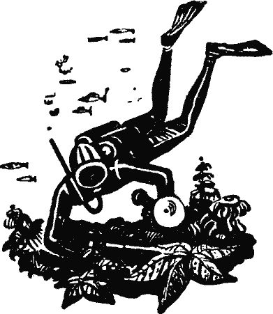 Скоро из-под темной черты горизонта покажется краешек солнца. Осталось не больше минуты до этого торжественного мгновения. Природа настороженно ждет. Большие серые чайки сидят на крыше лаборатории, повернувшись головой на восток, чайки похожи на солнцепоклонников с древней гравюры, ожидающих появления своего владыки. Вереница прожорливых бакланов, торопливо махая крыльями, пролетела на кормежку к дальним рифам, откуда доносится густой шум волн. В десяти милях от крохотного островка, на котором стоит мое жилище, лаборатория и гараж для лодки и комбайнов, рефрижератор, темнеет высокий берег, вершины пологих гор, скорее, холмов, уже золотятся в солнечных лучах. Оттуда тянет пряным настоем из запахов тропического леса. Мои друзья дельфины, подчиняясь моему торжественному настроению, также ждут восхода солнца. Они находятся возле причала. Одни медленно плавают по кругу, другие замерли, высунув голову из воды. Только маленький Пуффи шумно снует между взрослыми, теребит их за плавники, перепрыгивает через них, поднимая каскады брызг. Его не останавливают. Ребенок должен оставаться ребенком. Всему свое время. Дельфинов шестеро: Хох, Протей — сын Протея, Гера — родоначальница, дочери Геры — Бела и Нинон, Пуффи — сын Нинон. Заря пылает, охватив полнеба. На поверхности воды отражается небесный фейерверк. Глаза серых чаек вспыхивают, как угли. Я, видимо, очень резко взмахнул руками, приветствуя солнце, потому что чайки, все как одна, снялись с крыши и полетели, пересекая Лагуну, как и бакланы, в открытое море. Их перья окрашены краской зари, и они теперь похожи на розовых фламинго. Вода, еще в меру прохладная, бархатная, как говорит Костя, вливает бодрость в каждую клеточку тела. Я погружаюсь в глубину медленно, гребя одними перепончатыми ластами. Дно у причала всего на глубине пятнадцати метров, я могу не дышать более минуты и потому не спешу. Мое утреннее погружение в воды Лагуны, кроме гигиенических и гимнастических целей, открывает также начало моих дневных занятий. Я — дежурный биолог. У меня множество электронных приборов, следящих за малейшими изменениями в водной и воздушной среде, автоматические анализаторы и прочая техника, необходимая для присмотра за полем хлореллы. Все же нельзя полностью доверяться хитроумной технике. Прозрачность воды идеальная. Передо мною, внизу, раскинулось дно, похожее на изысканный цветник, по сторонам мягкая голубизна. Мимо, тараща на меня глаза, проплыла стайка макрели; рыбы остановились, провожая меня взглядом, затем мгновенно метнулись в сторону, заметив пеструю морскую лилию, которой вздумалось переменить место на коралловом дне. Лилия медленно машет своими листьями-щупальцами. Среди рыб у меня есть давние друзья: большой групер, манта и китовая акула. Уже полгода, как мы ведем безмолвное общение, довольные друг другом. Акулы сегодня нет — видимо, она завтракает на ближней отмели, — не видно и манты, а групер как будто ждет меня: он стоит между желтых коралловых кустов, усеянных алыми актиниями. У Чарли — так я назвал групера, — как всегда, праздничный вид, чешуя его отливает перламутром, глаза похожи на золотистые бриллианты. Все же Чарли сразу мне не понравился: бросалось в глаза его частое дыхание. Когда он плыл ко мне, то движения его были вялы. Семейство дельфинов также занято исследованием утре