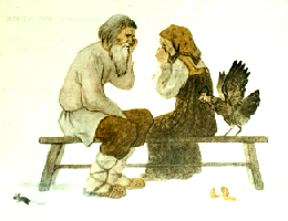 Старик, старик, отдай петушка да курочку, а то съем старуху! Жалко стало старику петушка да курочку, но — делать нечего — отдал их волку. На другой день волк опять прибежал: