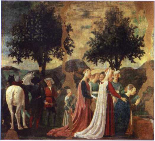 Пьеро делла Франческа. Встреча царя Соломона с царицей Савской. Левая часть фрески «История царицы Савской»