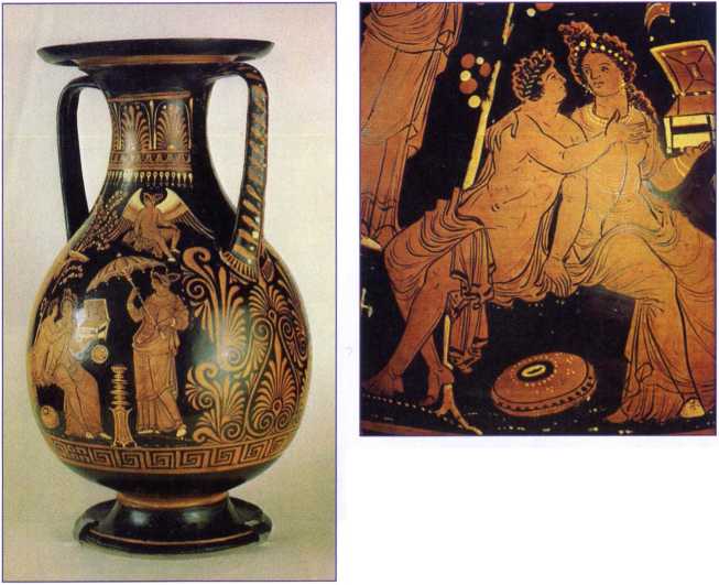 В Древней Греции символом женщины-хозяйки была никогда не покидающая своего домика черепаха, а примером идеальной жены — верная Пенелопа, ожидающая в уединении за пряжей возвращения своего вечно блуждающего Одиссея, или самоотверженная Алкестида, пожертвовавшая ради мужа жизнью. И если на надгробии эллинки были изображены уздечка, намордник и петух, это означало, что она вполне соответствовала идеалу: «держала в узде» служанок, «молчала» в мужском обществе и вставала «с первыми петухами». К главным женским добродетелям относились верность, скромность и героическая защита чести. Но самой лучшей была та, о которой меньше всего говорили посторонние, о недостатках или достоинствах — значения не имело. Жизнь эллинок протекала очень замкнуто. В греческих полисах для всех женщин, независимо от их возраста, существовали особые женские покои, гинекеи, на верхнем этаже дома, которые для надежности запирались на засов. Девушку до вступления в брак строго охраняли, предъявляя самые строгие требования к ее нравственности. Потеря девственности каралась жесточайшим образом, и та, кто «не сохраняла девственной крови», замуровывалась вместе с жеребцом, отчего эти зловещие места в народе получили названия «У жеребца и девушки». Замужние эллинки также обладали весьма ограниченной свободой. Их жизнь была скучна, однообразна и являлась собственно жизнью полурабыни, которая не смела выходить одна из дому, не имела прав на имущество, не принимала никакого участия в общественной жизни и все свое время, посвященное хозяйственным заботам, проводила в гинекее. Замужняя жизнь гречанки начиналась, когда она была еще ребенком, и зачастую, в день свадьбы ей приходилось сжигать на алтаре Артемиды свои игрушки и куклы. Заключение брака происходило без официального заявления и какой-либо публичной и религиозной церемонии — только особые ритуалы, узаконивающие союз. Чувства и физическая привлекательность молодых людей не играли никакой роли, и выбор супругов был лишен даже намека на романтику. В браке видели возможность союза двух равных семей и вытекающие из этого материальные выгоды. О главном предназначении жены давалось понять уже на свадьбе, когда она вступала в свое новое жилище. Само свадебное шествие выглядело весьма торжественно, с флейтистами, барабанщиками и факельщиками, но новое жилище было украшено весьма прозаически и сразу же указывало будущей жене на ее обязанности. Дверные косяки обвивали не пышные гирлянды цветов, а пряди шерсти. Перед порогом стояла ступка, чтобы молоть зерно. Имелись, впрочем, и знаки радостей супружеской жизни. За дверью новую невестку встречали родители мужа, которые вручали ей гранат, яблоко или айву, символ нежности и наслаждения. И все же, несмотря на прозаичность мотивов заключения браков, многие семьи были счастливы, но положение женщин резко отличалось от положения мужчин. По закону грек мог иметь только одну жену, но как истинный эллин, ценящий жизненные удовольствия, восполнял «недостатки» законодательства всеми возможными способами. А их было немало. К браку богатые греки относились как к скучной и неизбежной формальности, и, зачав детей, считали свой долг перед обществом выполненным. Все свободное время они проводили с образованными и искусными в любви гетерами, а их верные жены-затворницы не т