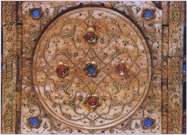 Джихангир, сын Акбара Великого, изображен с портретом отца, который держит глобус — символ своей власти. Могольская миниатюра начала XVII в.