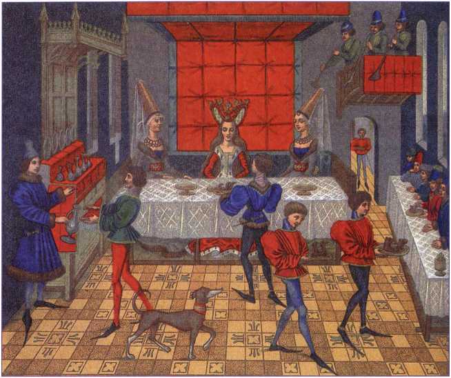 Столовая замка хозяйки богатого замка. Миниатюра из рукописи XV в.