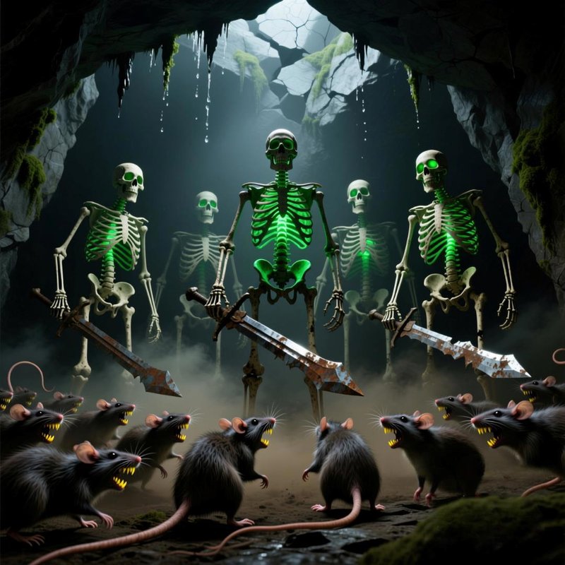 По пути нашего шествия, как я и думал, орда нам не попалась. Хотя именно в этом проходе мы её уже чистили. Двигались мы медленно из-за неторопливых зомби. Гончие постоянно вырывались вперёд, очищая нам проход от множества одиночных крыс, не оставляя работы для скелетов. Порой то одна, то другая крыса настигала отряд и кидалась на моих зомби, из-за этого они вынуждены были останавливаться и хватать этих мелких паршивцев, разрывая их зубами. Примечательно вёл себя толстяк, поднимая с пола уже дохлых зомби-крыс и с жадностью поедая их. Разумеется, без моей команды. А порой он отбирал ещё трепыхающихся крыс из рук и зубов других зомби.