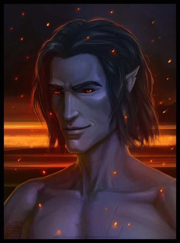 Местонахождение неизвестно. Окружающее пространство сбивало с толку. Величественный зал, достойный любого из самых уважаемых и гордых правителей любого из существующих во Вселенной государств, был просторен и великолепен — да. Изящные мраморные с золотистыми прожилками колонны, поддерживающие уходящий куда-то далеко наверх свод… Отполированные до зеркального состояния плиты на полу… Всё это выглядело одновременно простым и понятным, но в то же время вызывало ощущение какой-то неправильности или неестественности. Само по себе помещение было вполне обычным, но вот снаружи, за широкими стрельчатыми окнами, пространство было непостоянным — узнаваемые пейзажи провинции Морровинд, наблюдаемые с высоты птичьего полёта, сменялись радужными разноцветными вспышками и багровыми переливами Обливиона. А быть может, всё дело было в высокой человекообразной фигуре, замершей в одном из углов зала, и с любопытством наблюдавшей за неярко светящимися линиями и символами, словно бы выплавленными в поверхности каменных плит пола, над которыми прямо из воздуха сгущалось… тело? Будь в величественном зале ещё кто-нибудь, он бы наверняка сравнил происходящее с наиподробнейшей иллюстрацией к анатомическому атласу строения человека. Процесс творения был последователен и тщателен — сначала из ничего проявился скелет, затем он с тихим булькающим звуком начал обрастать внутренними органами, мышечными волокнами, сухожилиями, нервами и сосудами… Наконец, поверх всего этого «великолепия» тёмным облачком сгустилась и уплотнилась практически чёрная кожа. — Кто я… — сотворённый из воздуха мужчина с сиплым вздохом открыл светящиеся багровыми углями глаза, окинул неуверенным взглядом окружающее пространство и, наконец, сфокусировался на фигуре перед собой. — У каждого уважающего себя разумного, считающегося божеством, — хмыкнула фигура, — должен быть набор подобающих этому званию атрибутов. Особенно, если этот самый разумный хочет хотя бы когда-нибудь стать чем-то большим, чем мелкий местечковый божок, — говоривший неторопливо обошёл своего собеседника по кругу, внимательно рассматривая своё творение. Сотворённый был красив — его телосложение можно было с полным правом назвать идеальным по меркам практически всех разумных рас, не отличающихся особенными извращениями в своих эстетических предпочтениях. Практически чёрная, с лёгким лиловым отливом, кожа, иссиня-чёрные волосы, сейчас свободно рассыпанные по плечам. Заострённые уши. Всё это более чем красноречиво говорило о его принадлежности к расе тёмных эльфов, в разных мирах называвшихся по-разному, но здесь, на родине его творца, известных больше как данмеры. — Атрибутов? — Для развития и свободного присутствия в мирах смертных богу нужны посредники. Обычно ими могут служить последователи, верующие… Или, как в данном случае, — аватары. — Я… — в глазах мужчины проявилось понимание. — Что я должен делать? — Пока что — набираться новых знаний и умений, учиться и… Просто жить. Магическая фигура под новорожденным аватарой бога ярко вспыхнула и словно бы провалилась сама в себя, превратившись в бездонный чёрный провал, в глубине которого маленькими искорками мерцали далёкие звёзды других миров. Мгновение, и новосотворённый данмер безмолвно упал в пустоту. — Ненавижу правила, — пр