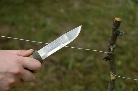 Сюжет совсем не фантастический. В полевых условиях работы для ножа особенно много. Нож затупился, а точилки нет. Что делать? Достаточно только распороть брюхо добытого на охоте кабана или лося, а нож уже режет заметно хуже и потрошить им не слишком удобно. Дело в том, что жесткая и прочная шкура покрыта еще более жесткой шерстью, а та, в свою очередь, вываляна в засохшей грязи. Лесной зверь мало похож на вычесанного домашнего пуделя. Если бы в противоположность точилке кто-то искал «тупилку» для ножей, то лучший вариант трудно себе представить. А вот можно ли подточить нож, не имея под рукой вообще никакой точилки или бруска? Подавляющее большинство камней, которые можно встретить повсюду, содержат в большей или меньшей степени зерна твердых окислов, чаще всего двуокиси кремния (SiO2), проще говоря, частицы самого обычного песка, а значит, могут сойти за абразив и способны шлифовать сталь клинка. Только зерна эти разного размер, неправильной формы и к тому же расположены хаотически. Кроме того, поверхность природного, необработанного камня никогда не бывает плоской, даже в первом приближении. Как известно, наличие ровной (плоской) рабочей поверхности есть главное требование, предъявляемое к приспособлениям для заточки. Можно пробовать скрести лезвием вдоль режущей кромки первым попавшимся булыжником, как это часто делают воинственные герои исторических боевиков. Но такой «заточки» хватит всего на несколько резов. Тоненькая-прето-ненькая пленочка твердой стали на самом конце режущей кромки быстро отломится именно по оставленным абразивными зернами бороздкам, оставляя лезвие еще более тупым, чем оно было перед «заточкой». Так что я бы воздержался от таких экспериментов. Еще один рецепт теоретиков — дотереть рабочую поверхность импровизированного бруска до плоскости, потирая камень о камень. Да, древние люди так делали, только добивались они этого трудом многих поколений, на это уходили долгие годы. Египетские пирамиды тоже ведь строили без подъемных кранов, поскольку труд рабов мало ценили. Может быть, хотите попробовать? Хорошо, не буду вас мучить. Сам когда-то попытался притереть к плоскости два куска песчаника. После нескольких дней усиленных упражнений (как раз пару лишних килограммов веса хотелось сбросить) я пришел к выводу, что, работая в таком темпе, лет через пять поверхность этих самодельных «брусков» можно было бы использовать для заточки ножа. Не протухнет немножко ваш кабан за это время? Прямо вам скажу: все, что валяется под ногами, давайте-ка лучше оставим в покое. Единственное, что мы можем сделать, это немного поправить и выпрямить режущую кромку ножа. Помните, я когда-то объяснял, как нож тупится? Давайте глянем на это еще раз — пригодится. Твердые включения в разрезаемом материале или боковые нагрузки заставляют режущую кромку нашего лезвия (рис. 1, поз. 1) немного прогнуться. При малых нагрузках она прогибается упруго, при несколько больших — уже пластично, так что после снятия нагрузки остается несколько отогнутой от плоскости симметрии клинка (рис. 1, поз. 2). Вполне нормальное явление. Это происходит при каждом резе, и уйти от этого не удастся никогда, даже при бритье. Конечно, волосы не очень твердые (но и не такие уж мягкие, кстати сказать), но ведь лезвие бритвы намного тоньше, чем лезвие ножа. Теперь немного ото