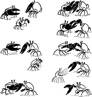 Многие из них вам знакомы. Территориальность, например. В природе есть виды, заблаговременно снижающие свою численность, получив сигналы о том, что она приближается к верхнему пределу. Открытие подобных видов — достижение экологии последних десятилетий. Для каждого вида среда обладает своей биологической емкостью, позволяющей популяции иметь ту или иную плотность населения. Емкость среды непостоянна, она колеблется, причем всегда важен тот фактор, который оказался в минимуме. В сосновом лесу мало птиц-дуплогнездовиков не потому, что там мало пищи, а потому, что в соснах редко бывают дупла. Развесив дуплянки, мы снимаем этот ограничивающий фактор, увеличиваем емкость леса, и численность дуплогнездовиков будет увеличиваться, пока не «упрется» в новый фактор, находящийся в минимуме, и т.п. Но нам так и не удастся, снимая один за другим ограничители, увеличить численность дуплогнездника до ограничения со стороны пищи, если только наш вид обладает территориальным поведением: самцы делят лес на участки, а их представление о допустимом размере участка преувеличенное. Поэтому пищи на участках оказывается много больше, чем нужно семье. Раздел происходит не между всеми самцами. Все достается более агрессивным, а остальные остаются без участков. Если даже какой-нибудь из изгоев и займет маленький, плохонький участок, размножаться он не сможет: у самки генетическая программа контролирует допустимый размер и качество предлагаемого ей самцом участка. Самца с плохим участком, а тем более вообще без участка, она отвергает. Так, путем исключения из размножения территориальные виды устанавливают свою плодовитость на нужном уровне, избегая малоприятной встречи с ультимативным фактором — недостатком пищи. У человека территориальные программы не разрушены полностью: при всяком подходящем случае он стремится обзавестись своей территорией. Сверх этого (в отличие от дуплогнездовиков, но в полном сходстве с человекообразными обезьянами) люди выделяют групповые территории и отстаивают их очень активно. У первобытного человека групповой территориализм был, как считают, главным регулятором численности. Знакомая нам агрессивность может служить той же цели. Агрессивность — присущая большинству видов животных настырность — служит основой для самых разных внутривидовых построений. Суть агрессивности в том, что при общении каждая особь стремится занять по отношению к другим более высокое, доминантное положение. Выяснение отношений приводит к самоорганизации группы в иерархическую лестницу или пирамиду с доминантами наверху. При увеличении плотности популяции или уменьшении емкости среды агрессивные стычки значительно учащаются и служат важным сигналом о неблагополучии. Этот механизм подробно изучен на очень многих видах, он проявляется в огромном разнообразии форм. Рассмотрим некоторые из них, ибо человек — не просто вид с агрессивным поведением, а один из самых агрессивных видов. Он способен в припадке ярости даже убить своего соплеменника. В природе такое встречается не часто. Человеку свойственно создавать и самые сложные иерархические структуры. Они самособираются, стоит дать волю инстинктивным программам. Так что, читатель, когда я буду описывать проявления агрессивных контактов у разных животных — от кузнечика до обезьян